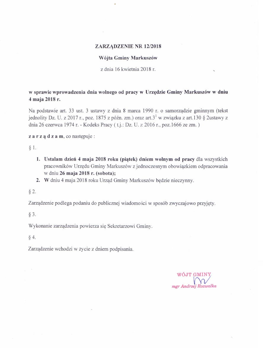 Oświadczenie Przewodniczącego Rady Gminy Markuszów