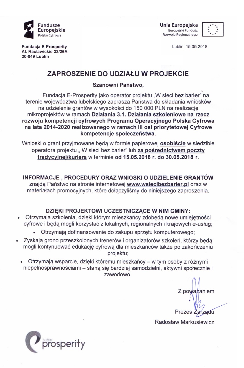 Nabór Zgłoszeń lokalizacji będzie trwał od dnia 21.05.2018 r. do dnia 08.06.2018 r.