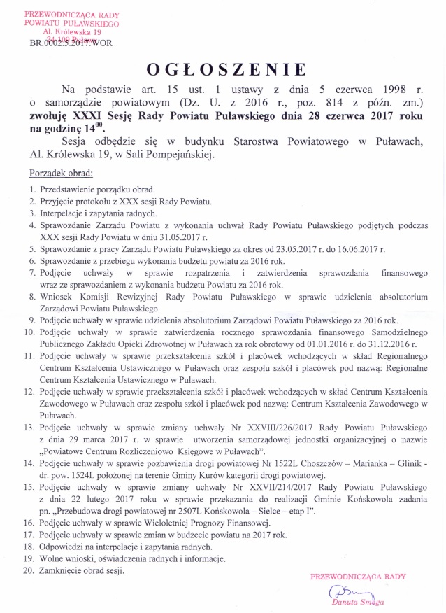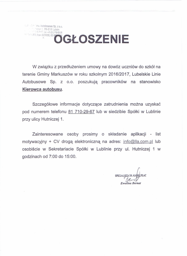 O G Ł O S Z E N I E