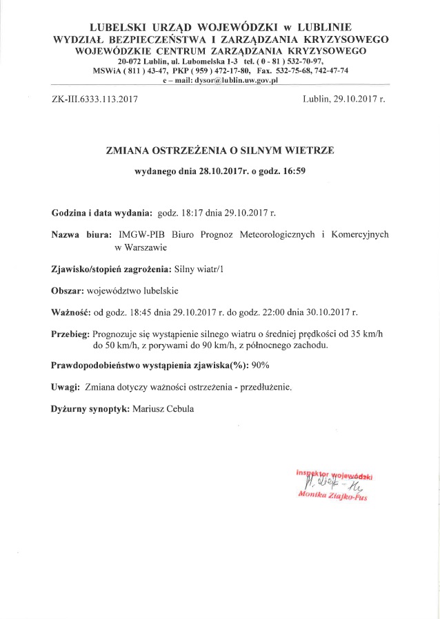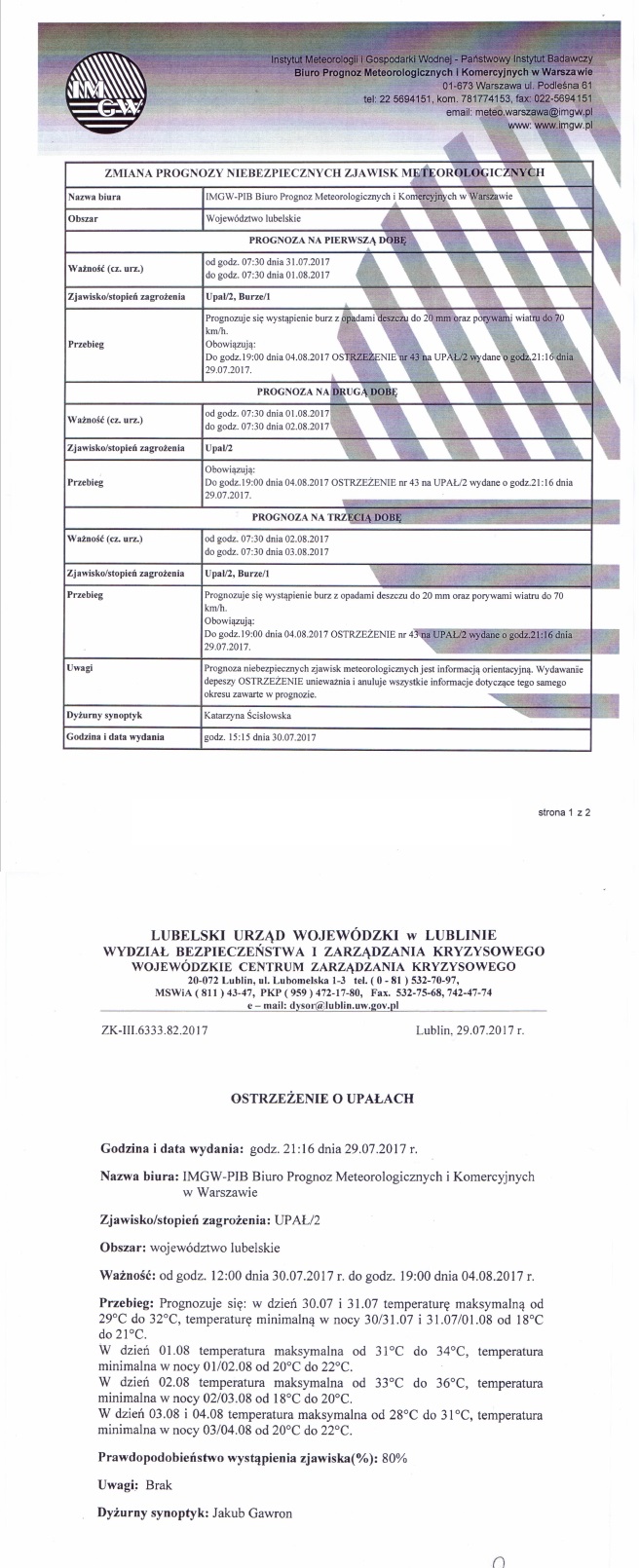 W załączeniu przedstawiamy podstawowe informacje dotyczące zagrożeń jak i postępowania w przypadku ich wystąpienia.