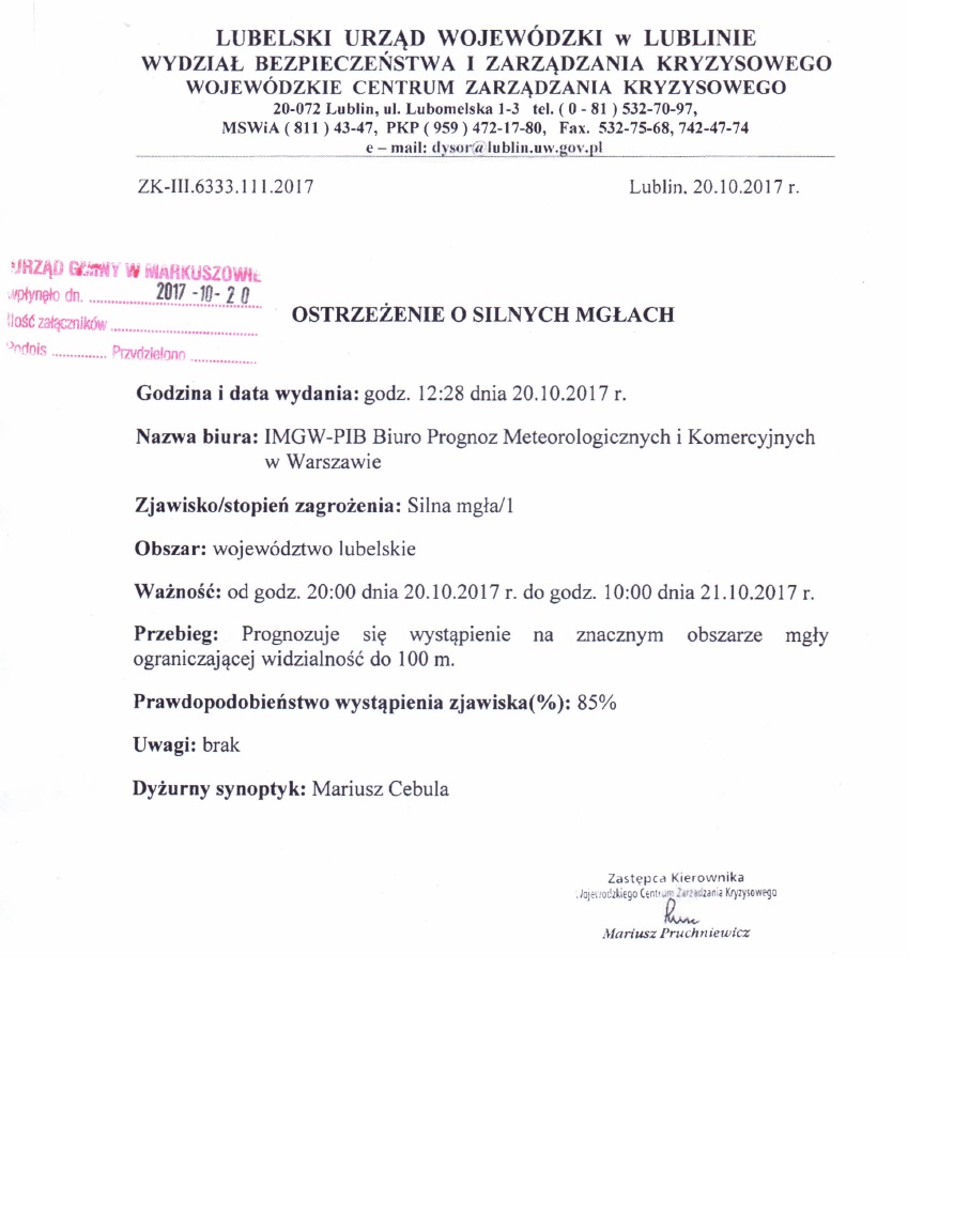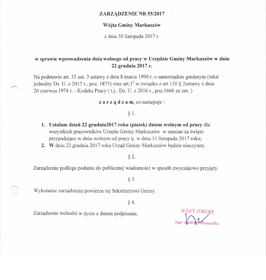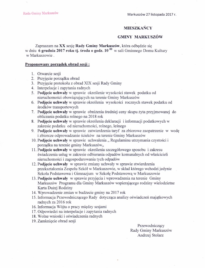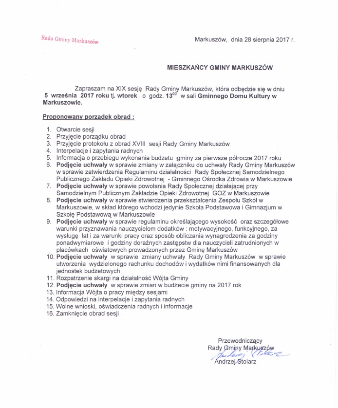 oraz Wójt Gminy Markuszów