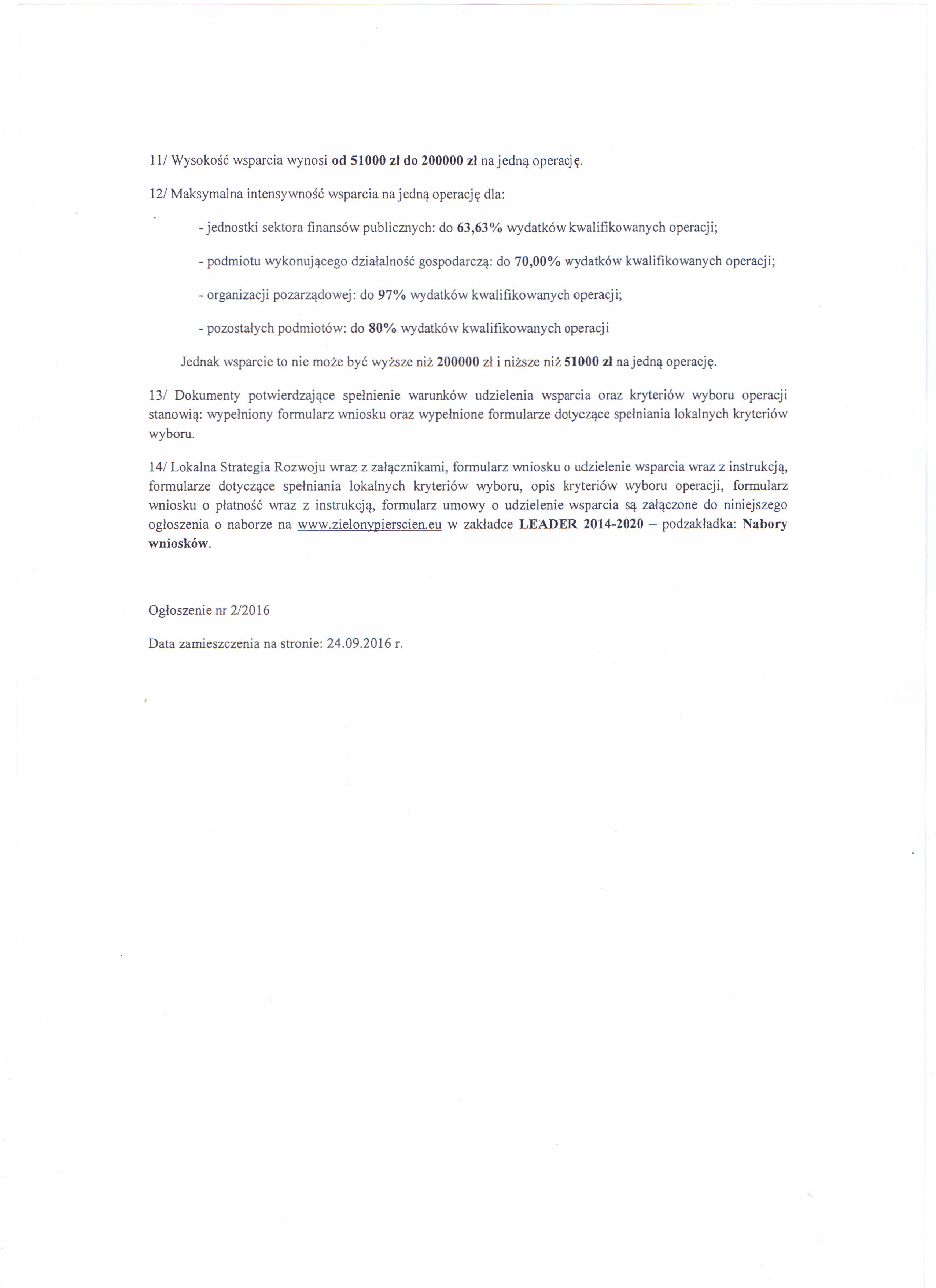 Liczba miejsc na szkoleniu jest ograniczona. Termin zgłoszenia na szkolenie upływa w dniu 30 września 2016 r. Szczegółowy program szkolenia oraz formularz zgłoszeniowy do wypełnienia, zamieszczone na stronie http://zielonypierscien.eu/strona-glowna/jak-zalozyc-wlasna-firme-wsparcie-z-inicjatywy-leader-zapraszamy-na-sz